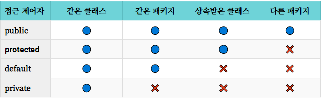 | 접근 제어자 | 접근 가능 범위 | 특징 |